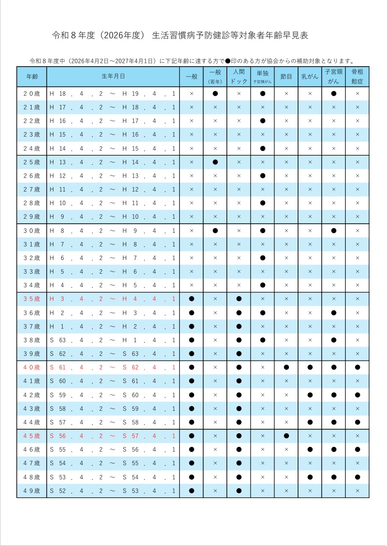 対象者年齢早見表(~49歳/50歳~) |