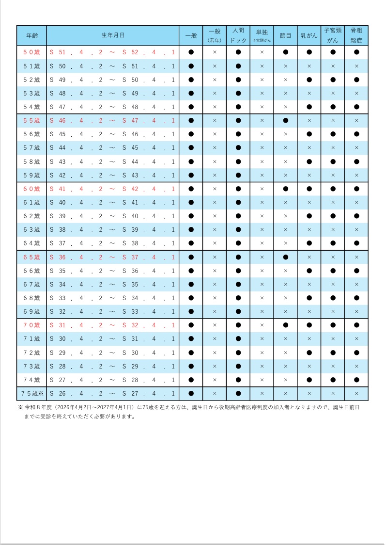 対象者年齢早見表(50歳~) |