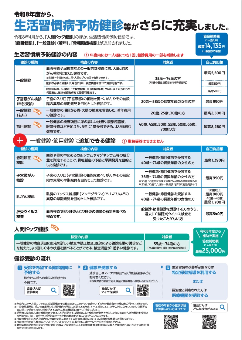 生活習慣病の早期発見、早期治療はもとより、自己の健康状態を知る為にも定期的に健康診断を受けられることをお勧めいたします。